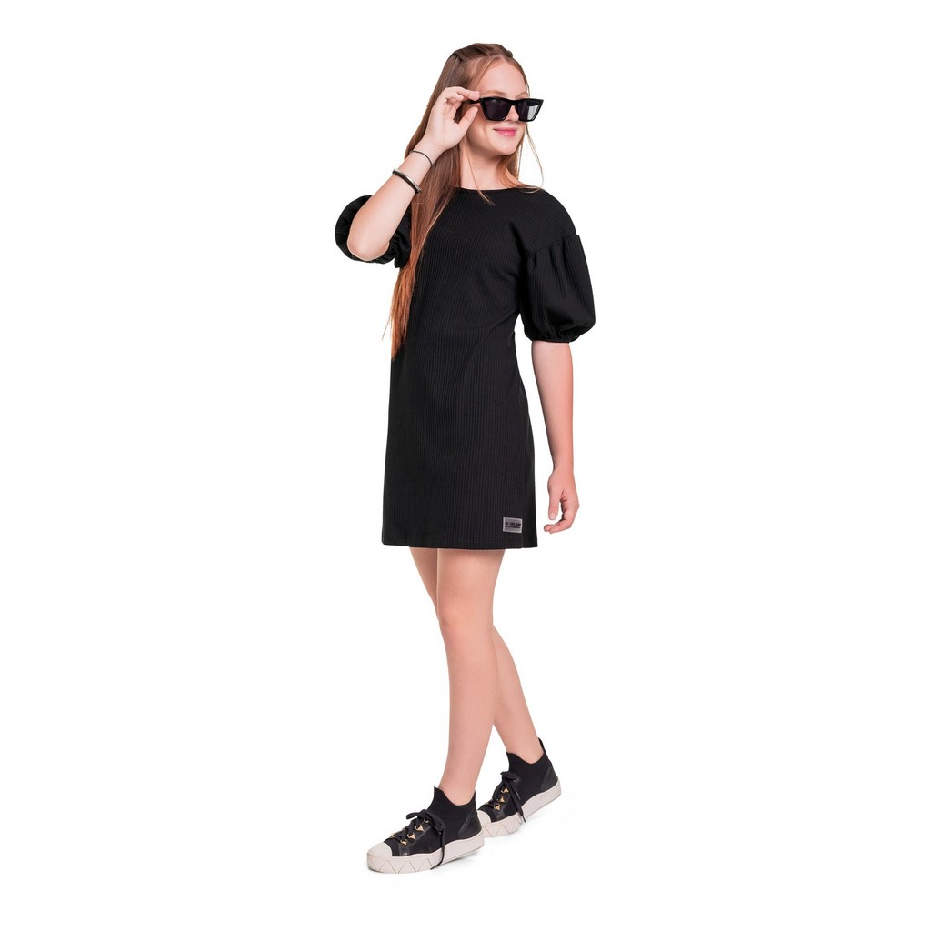 Este vestido juvenil é perfeito para as meninas que buscam praticidade e estilo. Confeccionado em ribana canelada, é confortável, versátil e moderno. Com manga bufante, adiciona um toque fashion ao look. Possui decote em V na parte de trás, que confere um charme especial à peça. Ideal para diversas ocasiões, é uma escolha estilosa para o guarda-roupa das meninas.Tecido: RibanaComposição: 48% Algodão 48% Poliéster 4% ElastanoModelagem: JustaComprimento Manga: CurtaComprimento: CurtoForro: NãoDecote/Gola: Redondo