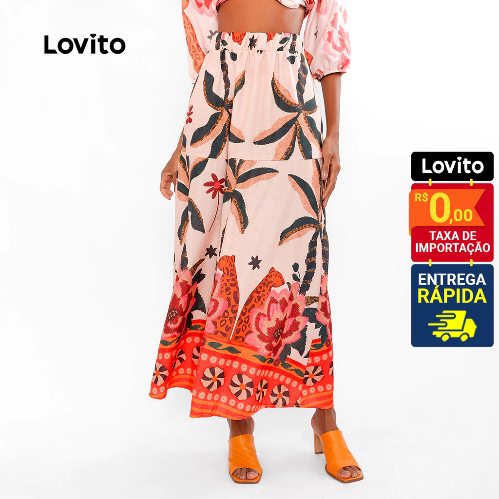 Lovito Bossa | Saia Elegante Feminina com Estampa Tropical LB485BRL515