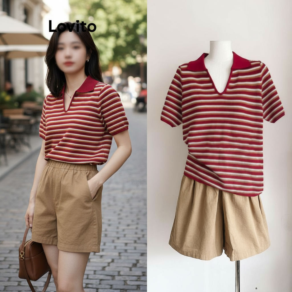 ✅DESTAQUES -❤️Bloco De Cores -❤️Leve E Respirável ✅DESCRIÇÕES Padrão: Listrado Estilo: Casual Mais Tamanho: Não Material: Poliéster Composição: 95%Poliéster +5%Spandex Tipo Fit: Ajuste Regular Transparente: Não Esticamento: Esticamento Alto: Esticamento Alto Região Da Origem: País Da China ✅REFERÊNCIA DE MODELAGEM A modelo está vestindo: P Altura: 165 cm Peso: 55 kg Busto: 88 cm Cintura: 68 cm Quadris: 93 cm ✅O PACOTE INCLUI 1X Camiseta ✅APRESENTAÇÃO DO LOVITO Lovito é uma marca emergente que acredita no poder das meninas, comprometida com a oferta de escolhas de roupas elegantes e acessíveis para diferentes estilos, necessidades e identidades. Nós acreditamos que a moda deve ser divertida, liberadora e você sentemos ótimos. Depois de todos, o melhor acessório para qualquer aspecto é de autoconfiança. ✅NOTAS DE COMPRA Por favor, gentilmente, veja sua altura e a tabela de tamanhos antes de comprar. Há diferença de 2-3% de acordo com a medição manual. Todas as fotos de produtos desta loja são 100% tiro real. Due à luz e tela diferentes, uma diferença de cor sutil e erro real é normal. Siga nossa loja e Descubra novos itens e melhores negócios para você!! Se você tem qualquer pergunta, fale conosco e lhe enviará breve como necessário.😊
