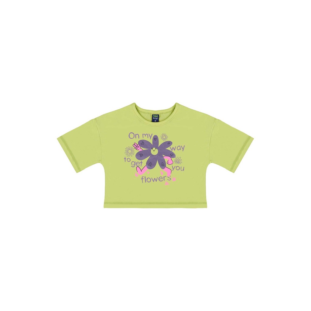 Blusa infantil para menina, confeccionada em meia malha, é leve e ideal para o dia a dia. A estampa alegre de flor, com detalhes em glitter, traz um toque divertido e encantador, tornando o look das pequenas ainda mais especial. Esta blusa é perfeita para combinações estilosas e confortáveis.Tecido: Meia MalhaComposição: 100%algodãoModelagem: AmplaComprimento Mangas: CurtaForro: NãoDecote: Redondo