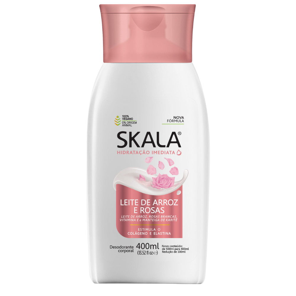 Kit 2 Loção Creme Hidratante Corporal Arroz E ROii, é um prazer ter você aqui! Já pensou em cuidar da pele diariamente com uma dose extra de hidratação e suavidade? Com o Loção Creme Hidratante Corporal Arroz e Rosas Skala 400ml, você garante pele macia e perfumada todos os dias, ideal para quem busca praticidade, qualidade e economia. Descubra tudo o que esse kit pode oferecer! O que é: Loção Creme Hidratante Corporal Arroz e Rosas 400ml. - Marca: Skala. - Fragrância: Arroz e Rosas. - Vegano. O que tem: - Aroma de Rosas. - Vitamina E. - Extratto de Arroz. O que faz: - Estimula o colágeno e a elastina. - Hidratação. - Desodorante corporal. Indicado para: - Todos os tipos de pele. Como usar: - Limpe a pele e seque. - Aplique uma quantidade fazendo movimentos circulares. - Deixe a pele absorver o produto. - Use diariamente. Precauções de uso: - Evite excesso. - Deixe secar completamente o produto. - Não ingerir. Com o Loção Creme Hidratante Corporal Arroz e Rosas Skala 400ml, você garante não só uma pele bem cuidada, mas também um toque irresistível de maciez e perfume. Aproveite para manter seu estoque de hidratação e garantir um toque de cuidado especial todos os dias! Surgiu alguma dúvida? Entre em contato com a gente! Boas Compras :)osas Skala